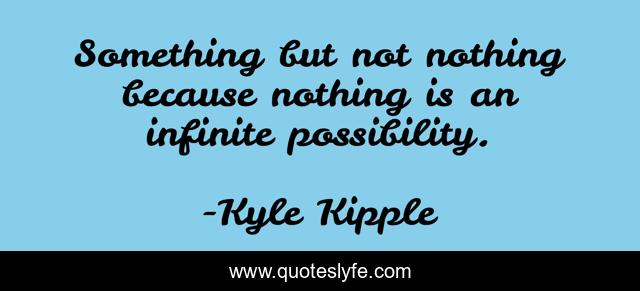 This page presents the quote "Something but not nothing because nothing is an infinite possibility.". Author of this quote is Kyle Kipple. This quote is about humor, making-sense-of-the-world, science,.