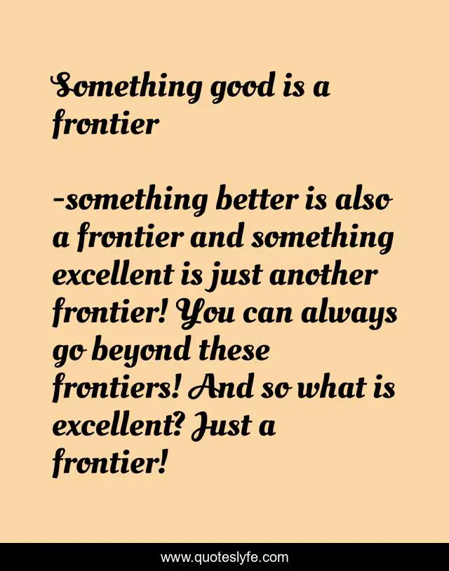 This page presents the quote "Something good is a frontier". Author of this quote is something better is also a frontier and something excellent is just another frontier! You can always go beyond these frontiers! And so what is excellent? Just a frontier!. .