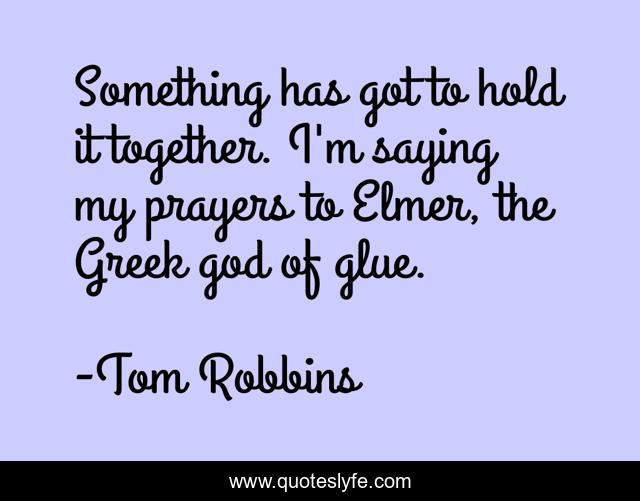 This page presents the quote "Something has got to hold it together. I'm saying my prayers to Elmer, the Greek god of glue.". Author of this quote is Tom Robbins. .