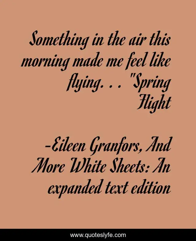 "Eileen Granfors, And More White Sheets: An expanded text edition Quotes." Quoteslyfe.com, 2025. Sat. 06 Dec. 2025. <https://www.quoteslyfe.com/quote/Something-in-the-air-this-morning-made-96903>.