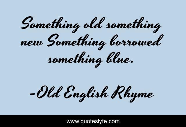 "Old English Rhyme Quotes." Quoteslyfe.com, 2025. Mon. 08 Dec. 2025. <https://www.quoteslyfe.com/quote/Something-old-something-new-Something-borrowed-something-270506>.