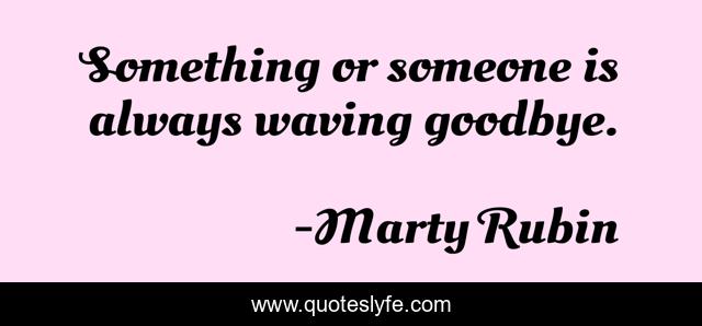 "Marty Rubin Quotes." Quoteslyfe.com, 2025. Sat. 06 Dec. 2025. <https://www.quoteslyfe.com/quote/Something-or-someone-is-always-waving-goodbye-122589>.