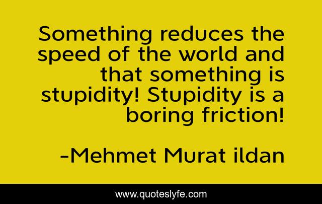 This page presents the quote "Something reduces the speed of the world and that something is stupidity! Stupidity is a boring friction!". Author of this quote is Mehmet Murat ildan. .