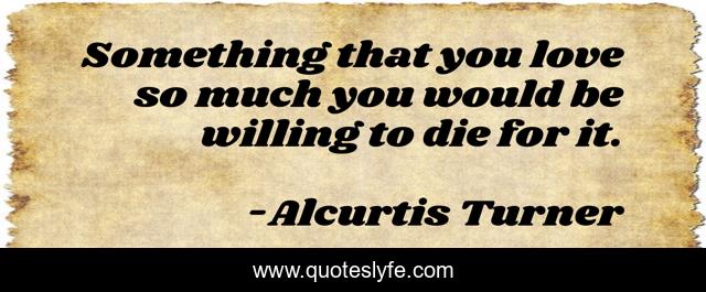 This page presents the quote "Something that you love so much you would be willing to die for it.". Author of this quote is Alcurtis Turner. This quote is about relationships, life, love, alcurtis-turner, people, sports, affection,.