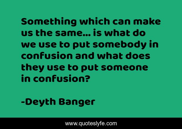 This page presents the quote "Something which can make us the same... is what do we use to put somebody in confusion and what does they use to put someone in confusion?". Author of this quote is Deyth Banger. This quote is about confusion, code,.