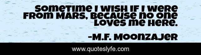 This page presents the quote "Sometime I wish if I were from Mars, because no one loves me here.". Author of this quote is M.F. Moonzajer. This quote is about wish, love, affection, mars,.