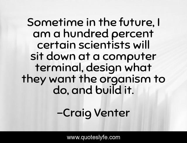 This page presents the quote "Sometime in the future, I am a hundred percent certain scientists will sit down at a computer terminal, design what they want the organism to do, and build it.". Author of this quote is Craig Venter. .