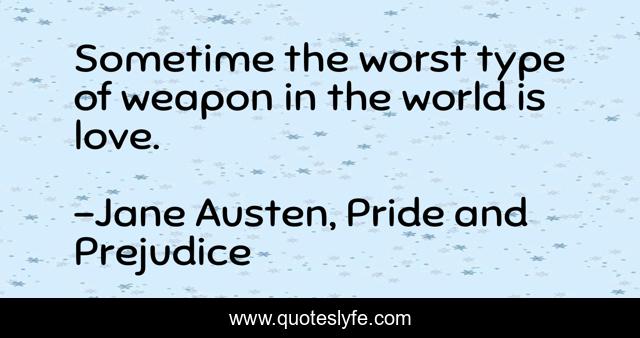 This page presents the quote "Sometime the worst type of weapon in the world is love.". Author of this quote is Jane Austen, Pride and Prejudice. .