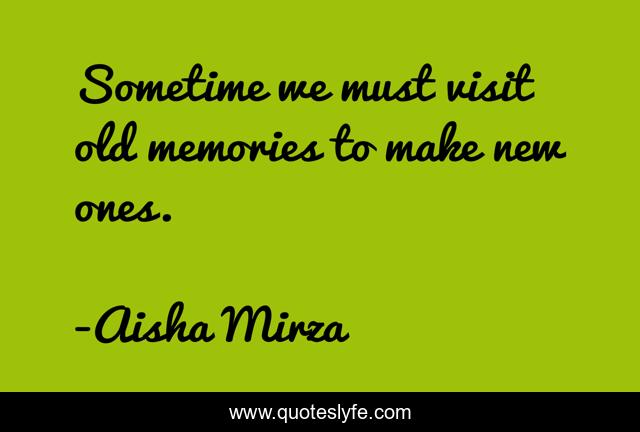 "Aisha Mirza Quotes." Quoteslyfe.com, 2025. Fri. 05 Dec. 2025. <https://www.quoteslyfe.com/quote/Sometime-we-must-visit-old-memories-to-164518>.
