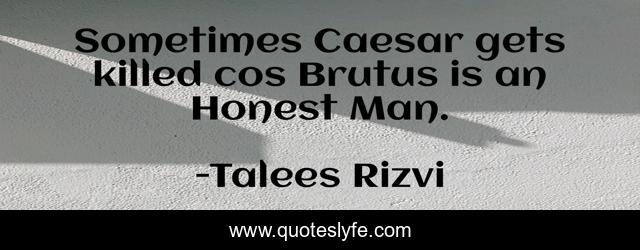 This page presents the quote "Sometimes Caesar gets killed cos Brutus is an Honest Man.". Author of this quote is Talees Rizvi. This quote is about situation, irony, caesar, brutus, honesty,.