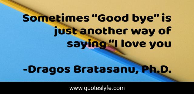 This page presents the quote "Sometimes “Good bye” is just another way of saying “I love you". Author of this quote is Dragos Bratasanu, Ph.D.. This quote is about broken-heart, relationships, life, love, breakup, i-love-you, good-bye, affection, true-love,.