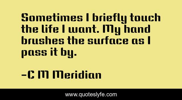 This page presents the quote "Sometimes I briefly touch the life I want. My hand brushes the surface as I pass it by.". Author of this quote is C M Meridian. This quote is about personal, quote, meridian,.