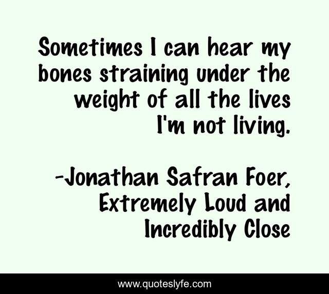 This page presents the quote "Sometimes I can hear my bones straining under the weight of all the lives I'm not living.". Author of this quote is Jonathan Safran Foer, Extremely Loud and Incredibly Close. .