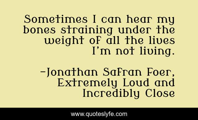 This page presents the quote "Sometimes I can hear my bones straining under the weight of all the lives I’m not living.". Author of this quote is Jonathan Safran Foer, Extremely Loud and Incredibly Close. .