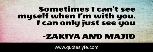 This page presents the quote "Sometimes I can’t see myself when I’m with you. I can only just see you". Author of this quote is ZAKIYA AND MAJID. .