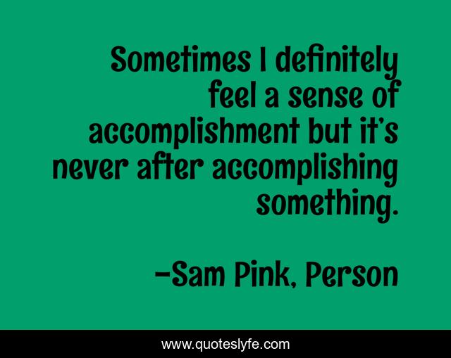 This page presents the quote "Sometimes I definitely feel a sense of accomplishment but it’s never after accomplishing something.". Author of this quote is Sam Pink, Person. This quote is about person, accomplishment, sam-pink,.