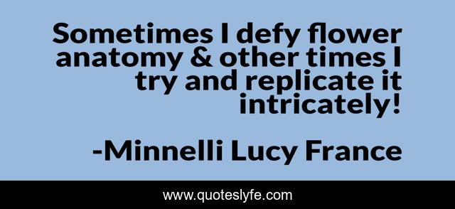 This page presents the quote "Sometimes I defy flower anatomy & other times I try and replicate it intricately!". Author of this quote is Minnelli Lucy France. This quote is about botanical-illustrator, fantasy-flower-art, botanical-artist, art, artist,.