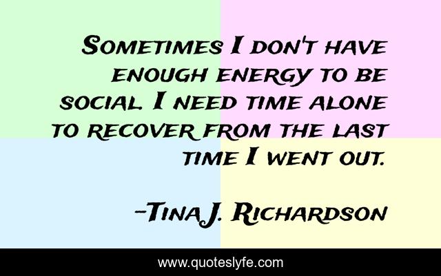 This page presents the quote "Sometimes I don't have enough energy to be social. I need time alone to recover from the last time I went out.". Author of this quote is Tina J. Richardson. This quote is about anxiety, autism,.