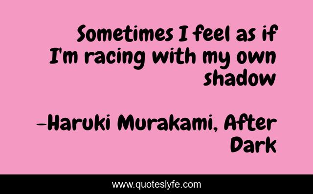 This page presents the quote "Sometimes I feel as if I'm racing with my own shadow". Author of this quote is Haruki Murakami, After Dark. This quote is about life, loneliness, shadow,.