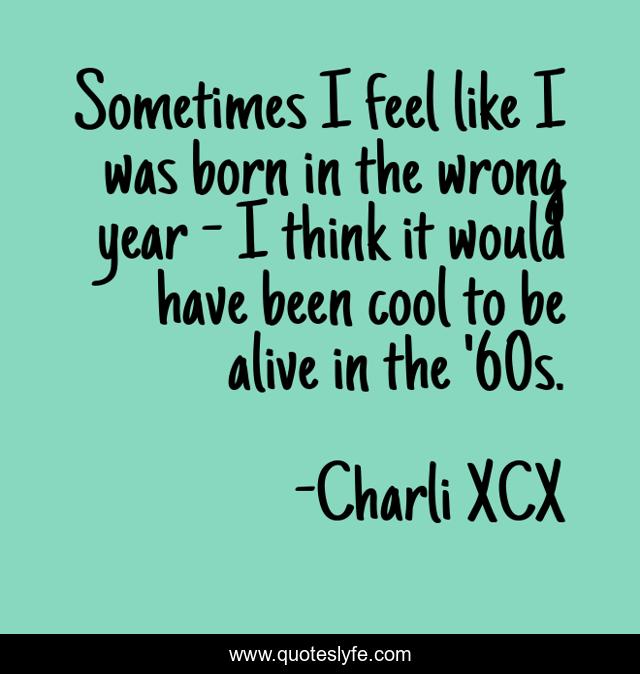 This page presents the quote "Sometimes I feel like I was born in the wrong year - I think it would have been cool to be alive in the '60s.". Author of this quote is Charli XCX. This quote is about born, sometimes, think,.