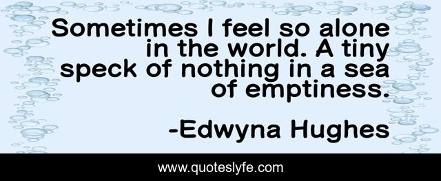 This page presents the quote "Sometimes I feel so alone in the world. A tiny speck of nothing in a sea of emptiness.". Author of this quote is Edwyna Hughes. This quote is about alone, depressing, sad,.