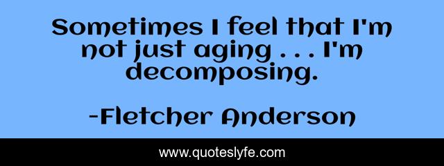 This page presents the quote "Sometimes I feel that I'm not just aging . . . I'm decomposing.". Author of this quote is Fletcher Anderson. This quote is about age, birthdays,.