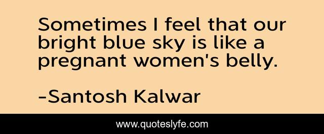 This page presents the quote "Sometimes I feel that our bright blue sky is like a pregnant women’s belly.". Author of this quote is Santosh Kalwar. This quote is about blue-sky, feelings, pregnant, thoughts, women,.