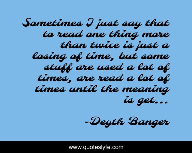 This page presents the quote "Sometimes I just say that to read one thing more than twice is just a losing of time, but some stuff are used a lot of times, are read a lot of times until the meaning is get...". Author of this quote is Deyth Banger. This quote is about get, read, one, thing, meaning, somtimes, twice, once,.