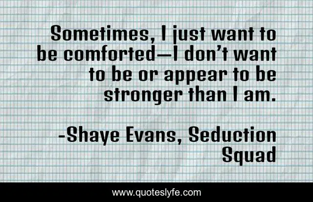 This page presents the quote "Sometimes, I just want to be comforted—I don’t want to be or appear to be stronger than I am.". Author of this quote is Shaye Evans, Seduction Squad. This quote is about mm-romance, erotica, love, affection, menage,.