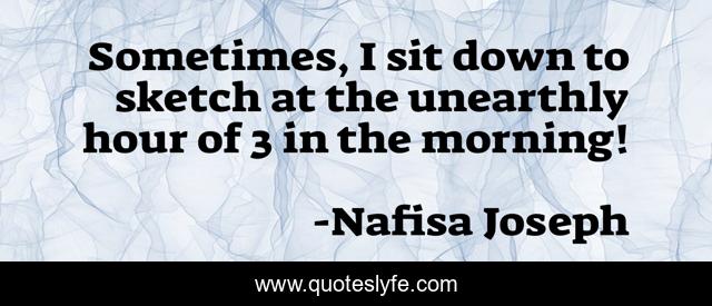 This page presents the quote "Sometimes, I sit down to sketch at the unearthly hour of 3 in the morning!". Author of this quote is Nafisa Joseph. This quote is about down, sketch, sometimes,.