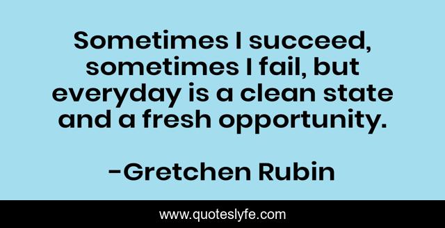 This page presents the quote "Sometimes I succeed, sometimes I fail, but everyday is a clean state and a fresh opportunity.". Author of this quote is Gretchen Rubin. .