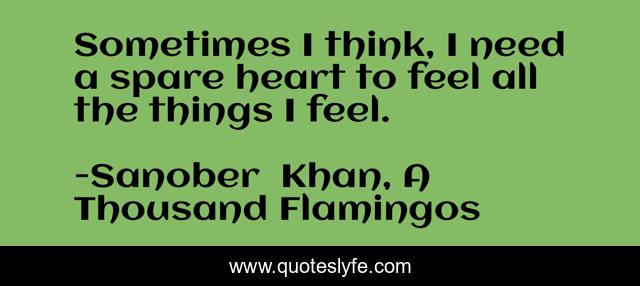 This page presents the quote "Sometimes I think, I need a spare heart to feel all the things I feel.". Author of this quote is Sanober Khan, A Thousand Flamingos. This quote is about heart, deep-feelings, sensitivity, soul, deep, poetry, sensitive, depth, emotions,.