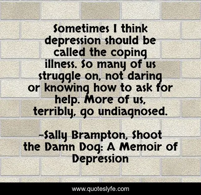 This page presents the quote "Sometimes I think depression should be called the coping illness. So many of us struggle on, not daring or knowing how to ask for help. More of us, terribly, go undiagnosed.". Author of this quote is Sally Brampton, Shoot the Damn Dog: A Memoir of Depression. .