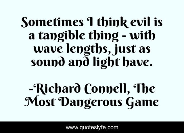 "Richard Connell, The Most Dangerous Game Quotes." Quoteslyfe.com, 2025. Fri. 05 Dec. 2025. <https://www.quoteslyfe.com/quote/Sometimes-I-think-evil-is-a-tangible-220691>.