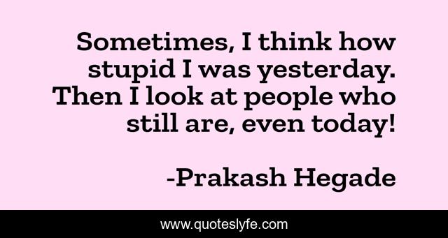 This page presents the quote "Sometimes, I think how stupid I was yesterday. Then I look at people who still are, even today!". Author of this quote is Prakash Hegade. This quote is about stupidity, people,.