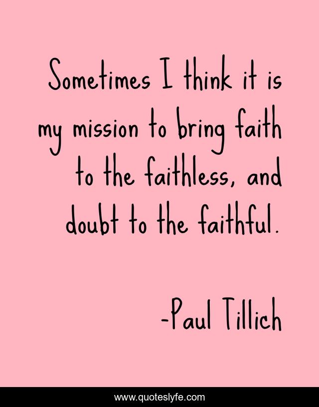 This page presents the quote "Sometimes I think it is my mission to bring faith to the faithless, and doubt to the faithful.". Author of this quote is Paul Tillich. This quote is about existentialism, doubt, faith,.