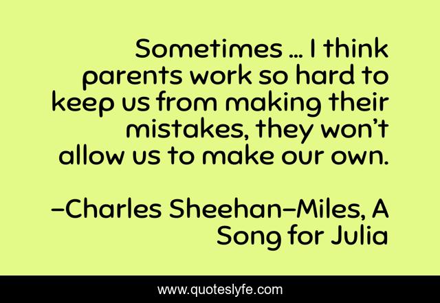 This page presents the quote "Sometimes … I think parents work so hard to keep us from making their mistakes, they won’t allow us to make our own.". Author of this quote is Charles Sheehan-Miles, A Song for Julia. .