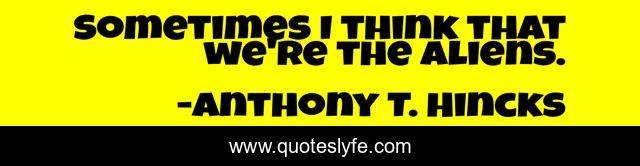 This page presents the quote "Sometimes I think that we're the aliens.". Author of this quote is Anthony T. Hincks. This quote is about aliens, philosophy, life, think,.