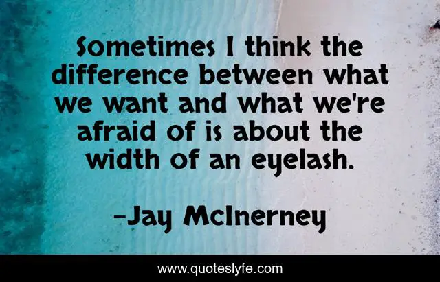 This page presents the quote "Sometimes I think the difference between what we want and what we're afraid of is about the width of an eyelash.". Author of this quote is Jay McInerney. This quote is about desire, fear,.