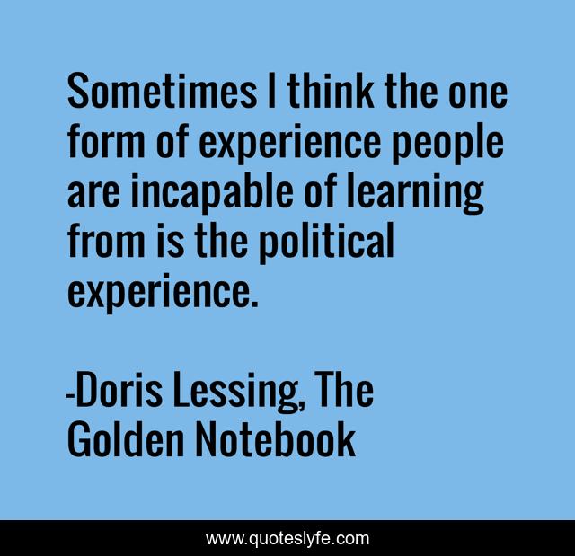 This page presents the quote "Sometimes I think the one form of experience people are incapable of learning from is the political experience.". Author of this quote is Doris Lessing, The Golden Notebook. This quote is about politics, learning,.