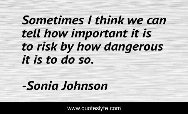 This page presents the quote "Sometimes I think we can tell how important it is to risk by how dangerous it is to do so.". Author of this quote is Sonia Johnson. .