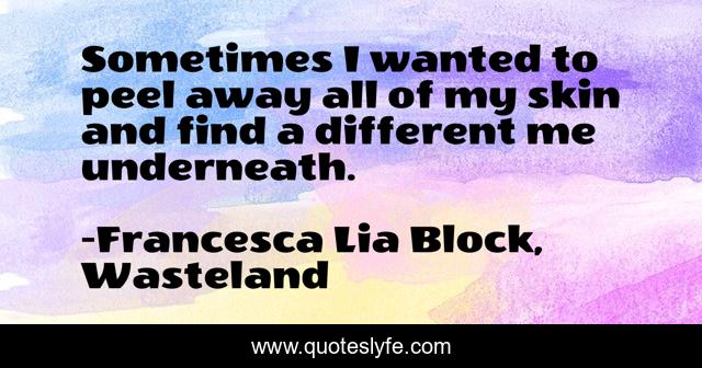 This page presents the quote "Sometimes I wanted to peel away all of my skin and find a different me underneath.". Author of this quote is Francesca Lia Block, Wasteland. This quote is about real, skin, skin-deep,.
