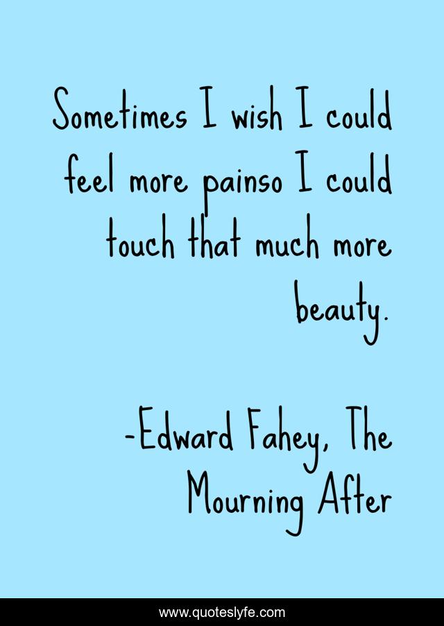 "Edward Fahey, The Mourning After Quotes." Quoteslyfe.com, 2025. Mon. 08 Dec. 2025. <https://www.quoteslyfe.com/quote/Sometimes-I-wish-I-could-feel-more-76460>.