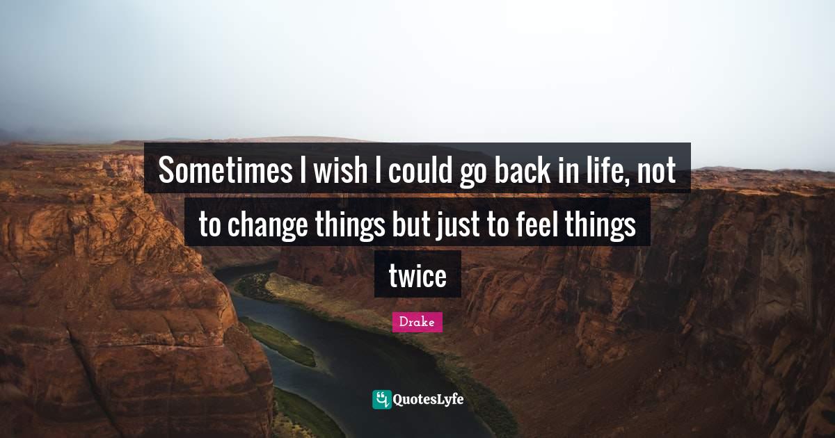 This page presents the quote "Sometimes I wish I could go back in life, not to change things but just to feel things twice". Author of this quote is Drake. This quote is about wish, feels, sometimes, life, change,.