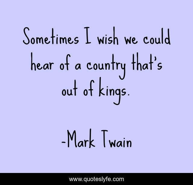 This page presents the quote "Sometimes I wish we could hear of a country that’s out of kings.". Author of this quote is Mark Twain. This quote is about kings, huck-finn, monarchy, government,.