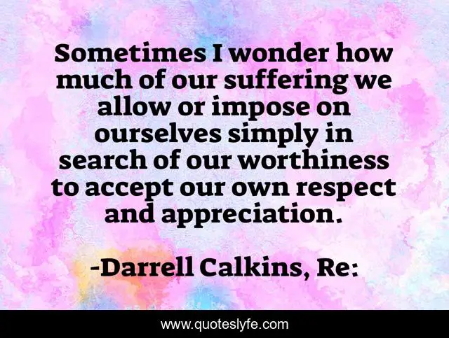 Sometimes I wonder how much of our suffering we allow or impose on ourselves simply in search of our worthiness to accept our own respect and appreciation.
