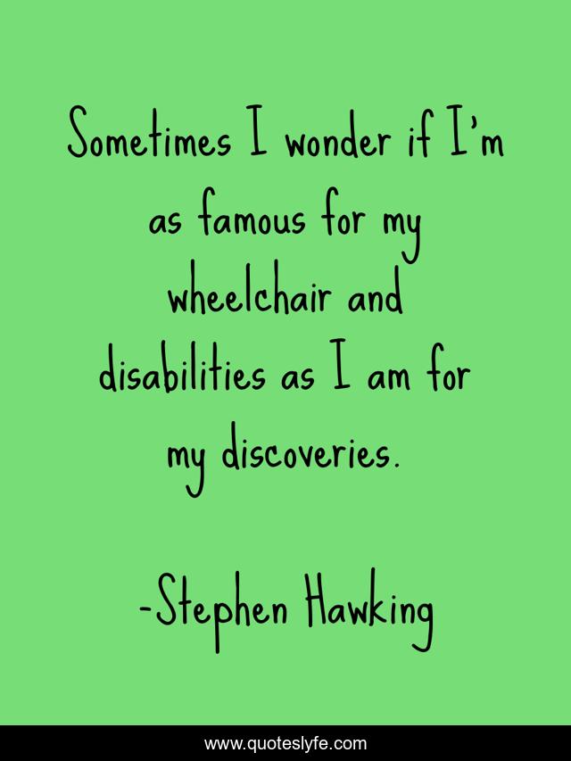 This page presents the quote "Sometimes I wonder if I'm as famous for my wheelchair and disabilities as I am for my discoveries.". Author of this quote is Stephen Hawking. This quote is about sometimes, wonder,.