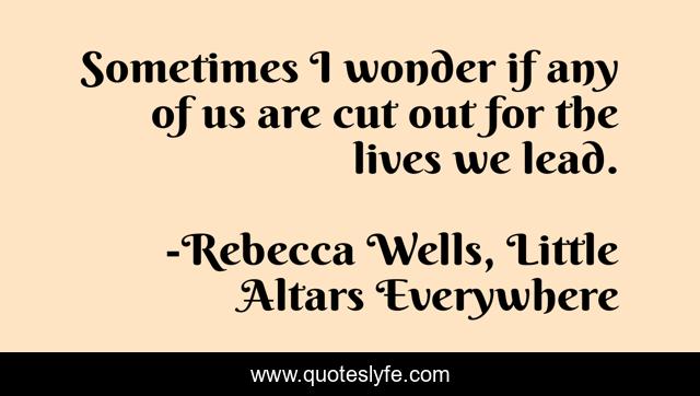 This page presents the quote "Sometimes I wonder if any of us are cut out for the lives we lead.". Author of this quote is Rebecca Wells, Little Altars Everywhere. .