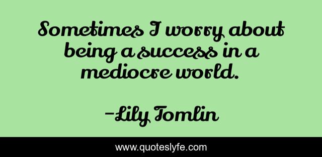 This page presents the quote "Sometimes I worry about being a success in a mediocre world.". Author of this quote is Lily Tomlin. This quote is about world, sometimes, worry,.