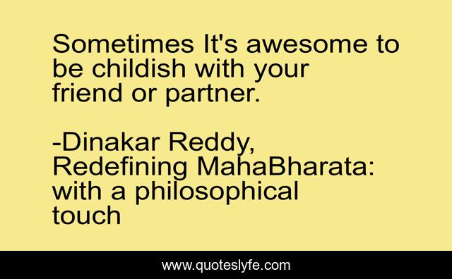 This page presents the quote "Sometimes It's awesome to be childish with your friend or partner.". Author of this quote is Dinakar Reddy, Redefining MahaBharata: with a philosophical touch. This quote is about life, love, childhood, affection, nostalgia,.